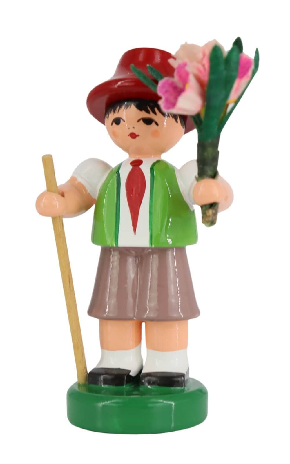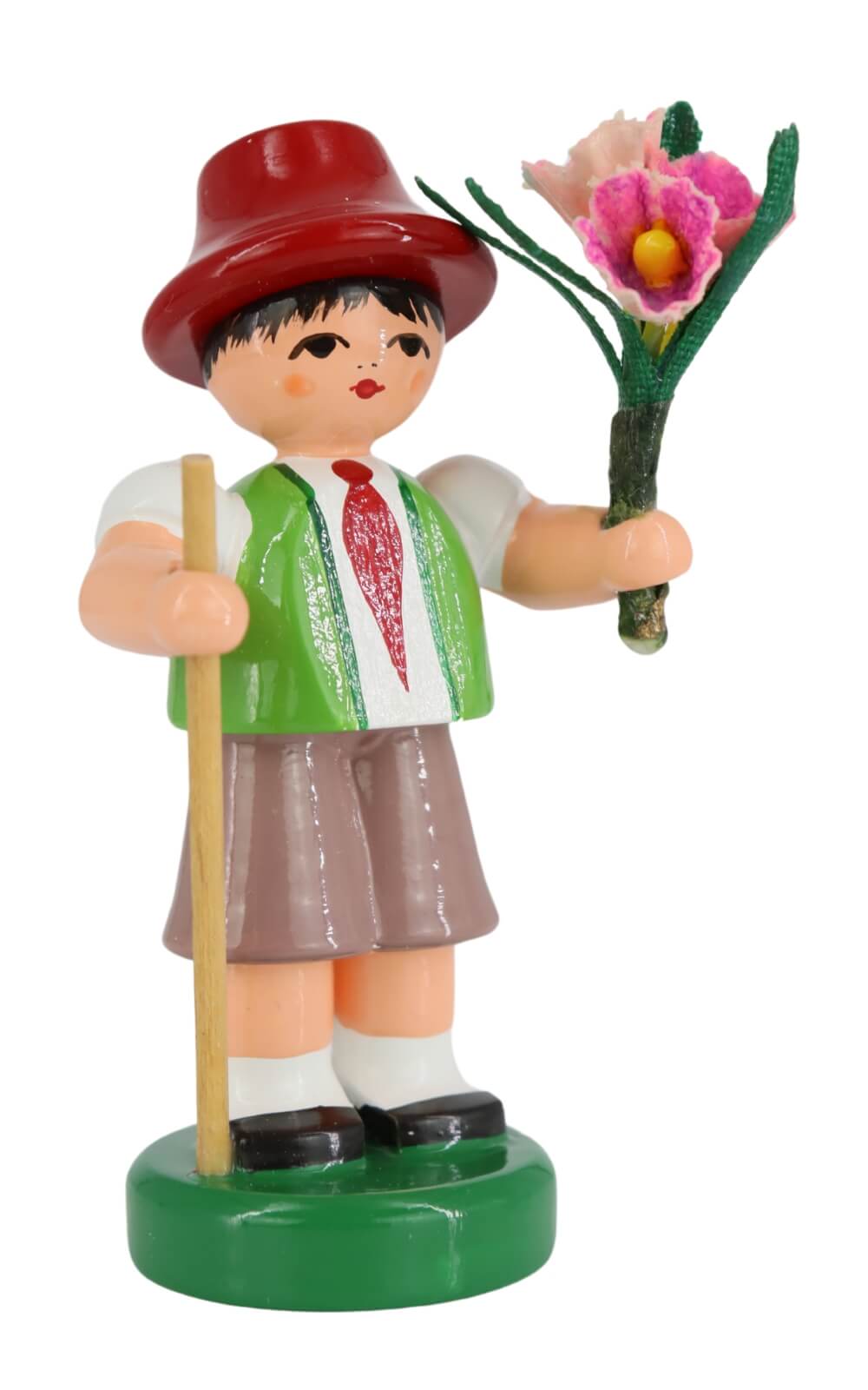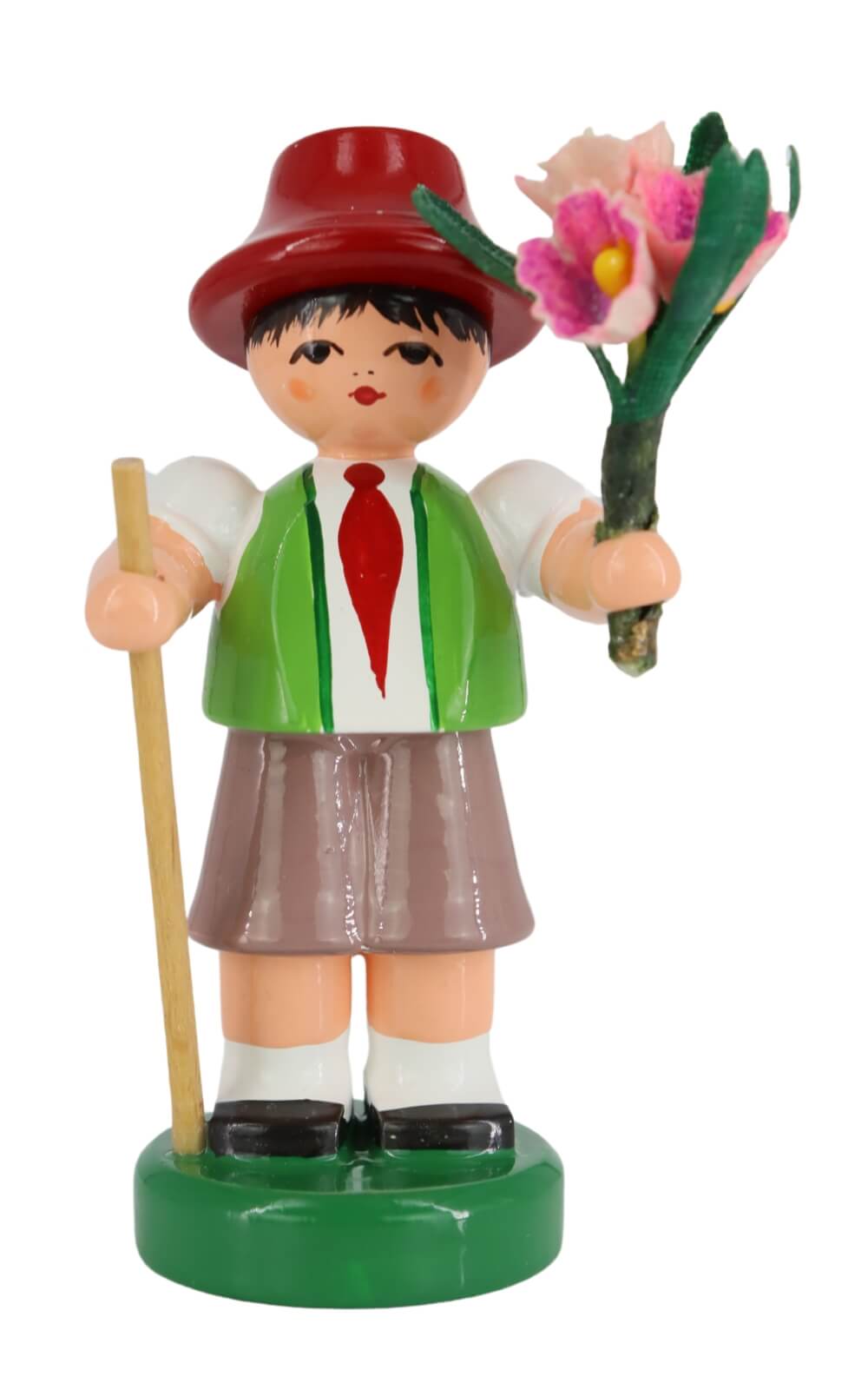 Einzigartige Handwerkskunst aus dem Erzgebirge: Das Miniatur Blumenkind - Junge, grün/rot
