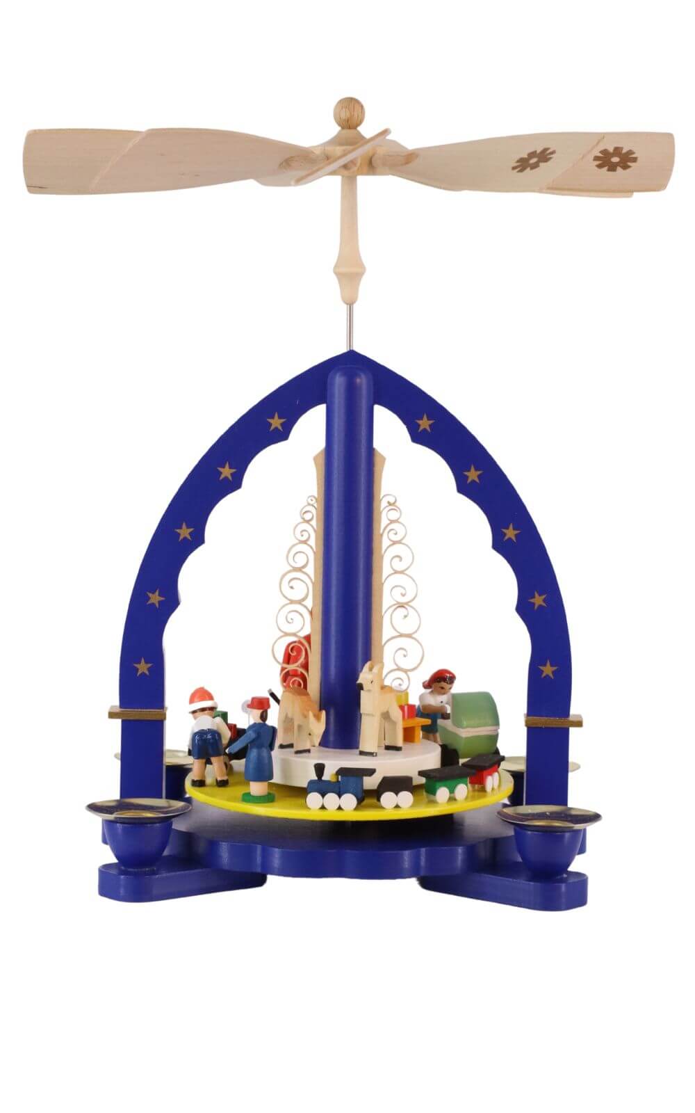 Weihnachtspyramide Weihnachtsbescherung, blau, 27 cm von Richard Glässer