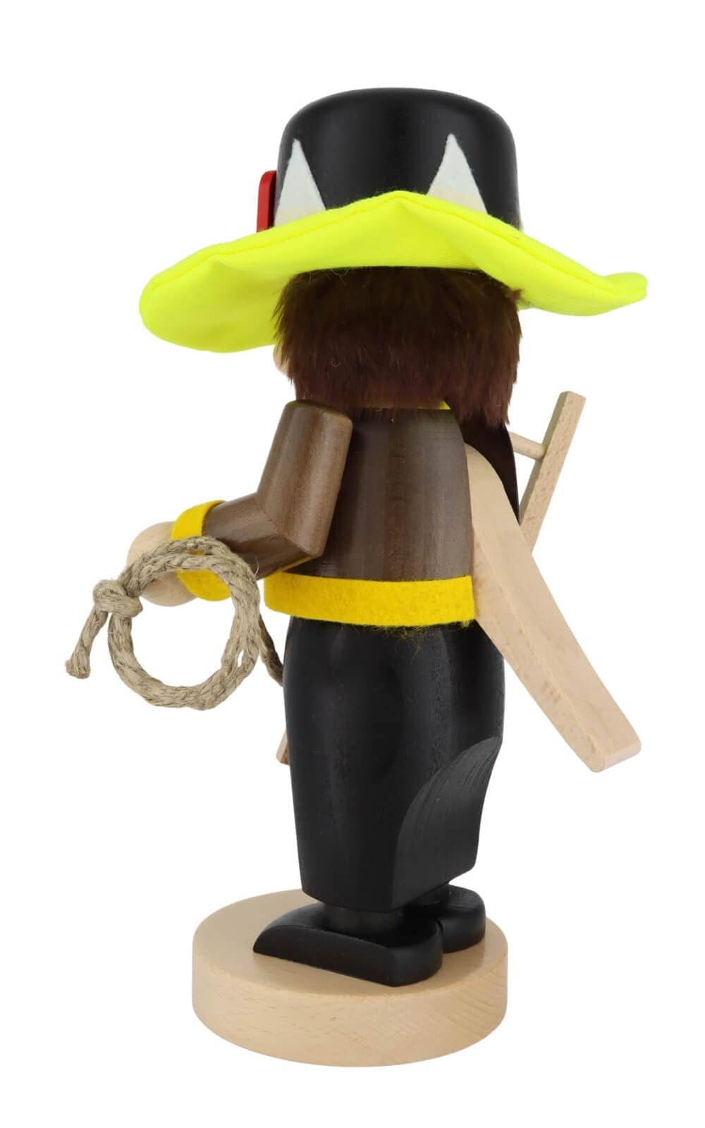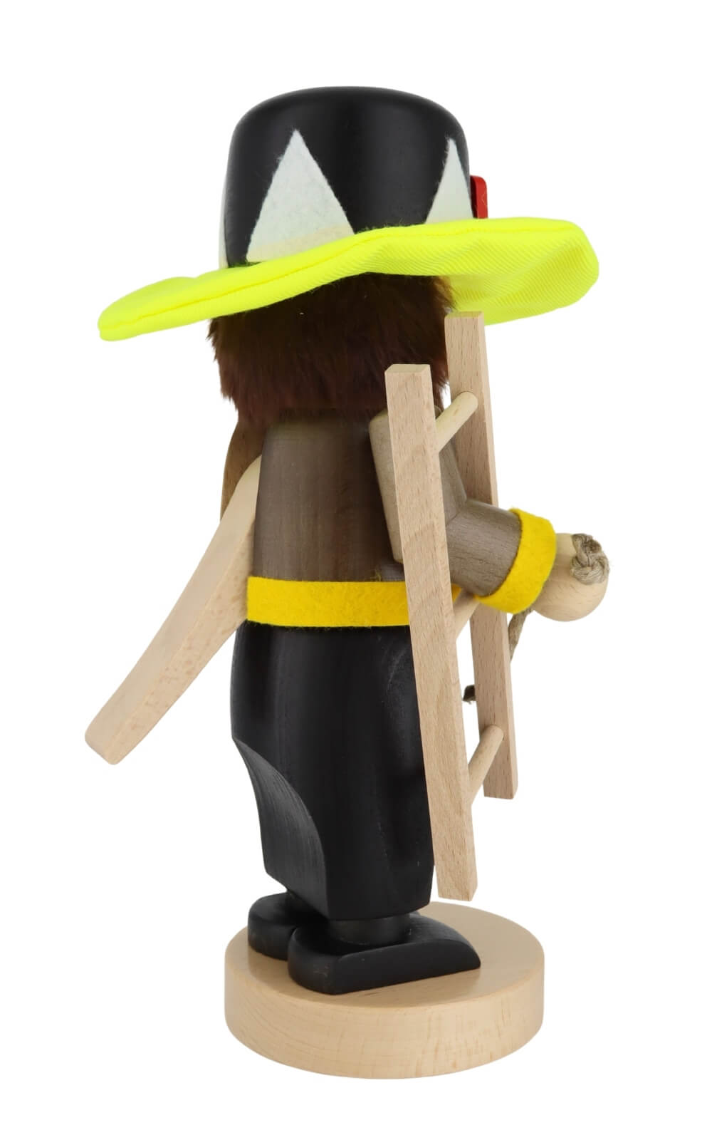 This nutcracker comes from the renowned Steinbach workshop and is traditionally crafted in Germany. Meticulous handmade work turns local woods such as maple, alder, ash, spruce, beech, and limewood into a figure that impresses with distinctive details. The firefighter nutcracker wears a black helmet with a bright yellow brim and a red FD badge that immediately stands out. His brown coat features yellow accents, recalling the iconic firefighter uniform. In his hands, he carries a rope loop and a wooden ladder – symbolic tools of his heroic profession that give this nutcracker an authentic presence. Rosy cheeks, a full beard, and the functional nutcracker lever underline its classic character. Measuring 11 inches tall, 4 inches wide, and 5 inches deep, it fits perfectly on mantels, shelves, or display cabinets.
